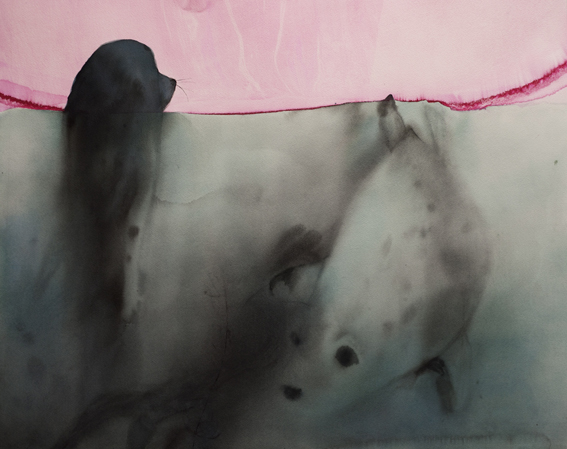 Kalastusongelma | Fishy problem watercolour and ink on paper, 68 x 84 cm (2014)