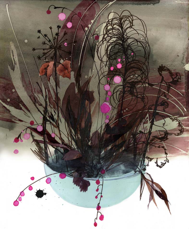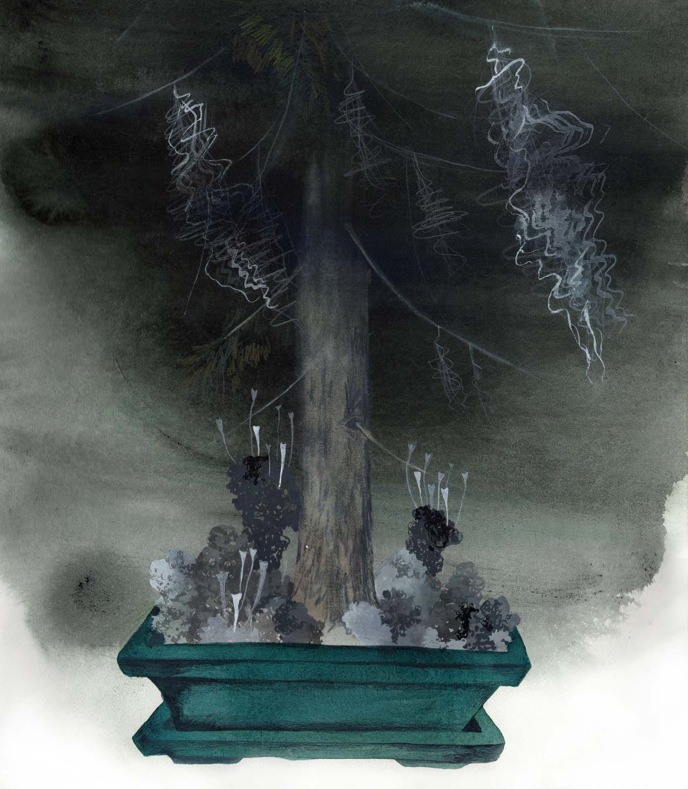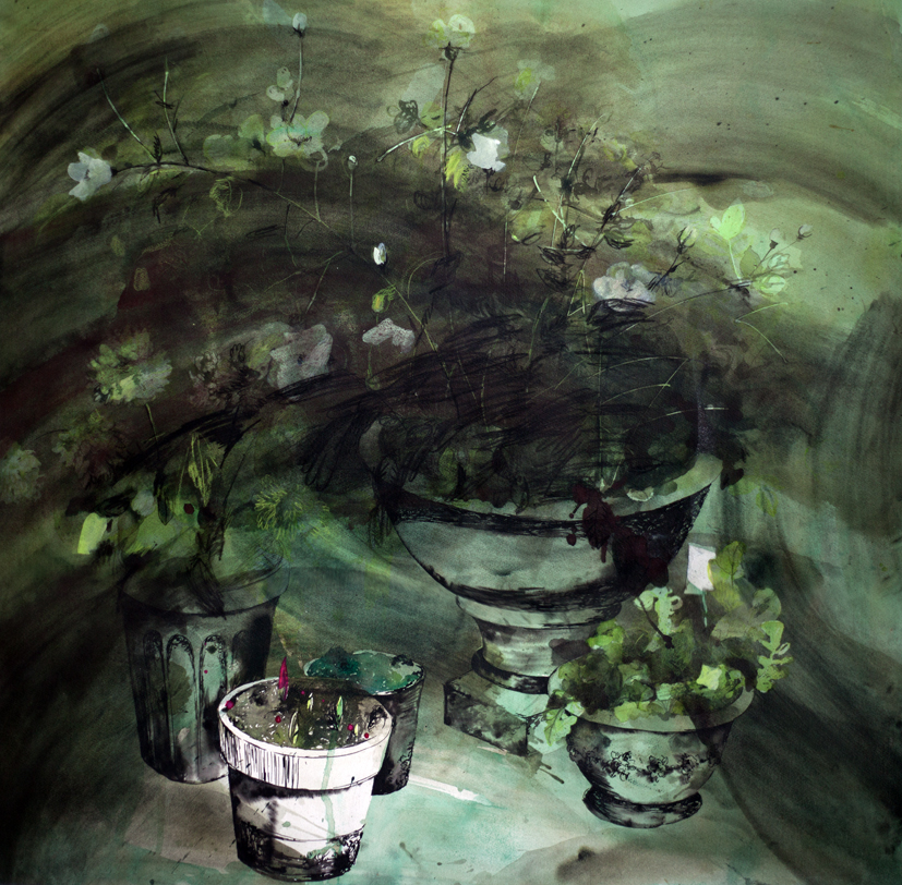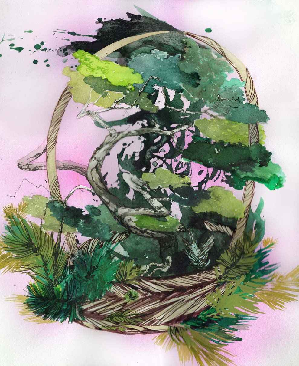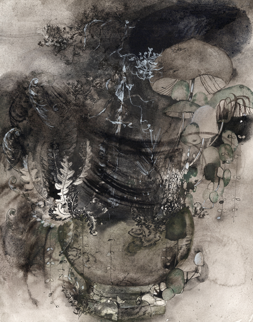 Sarjasta Korpi vastaan puutarha: Kasvimaa | From series Wilderness Versus Garden Watercolour and ink on paper